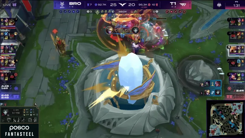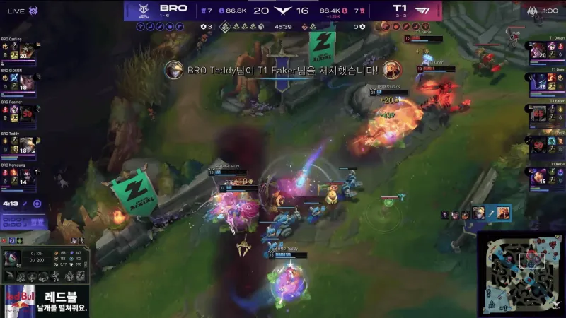 比赛第47分钟,T1再次拿下远古龙。随后BRO基地打出1换3但T1一波结束比赛。